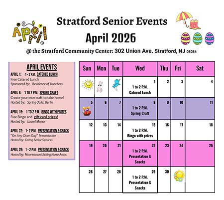 Stratford Senior Center Group welcomes seniors from the Sterling Community of Stratford, Magnolia, Somerdale, Laurel Springs and Hi-Nella to activities throughout the month.